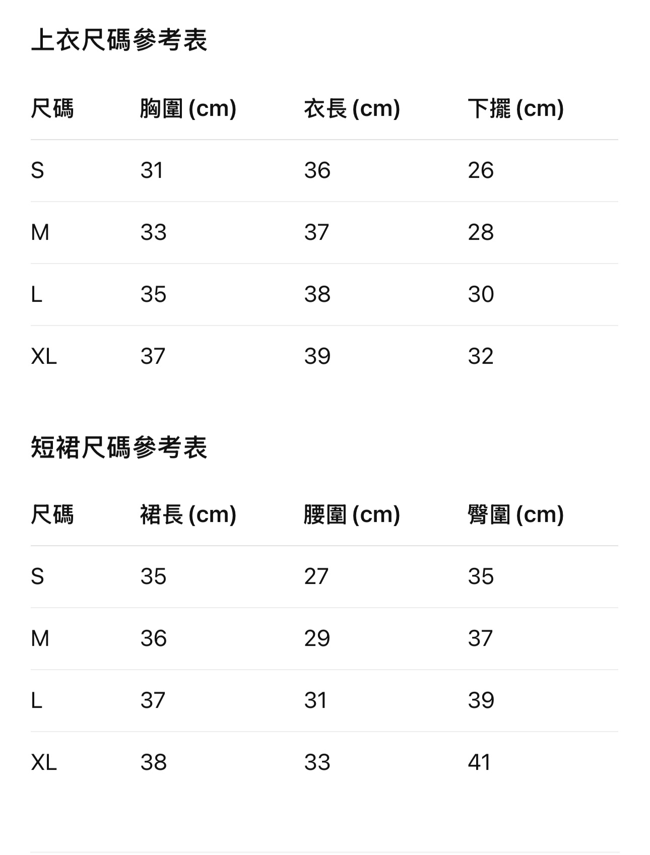 • 某些彈性款式,因布料特性,誤差幅度可能稍大。