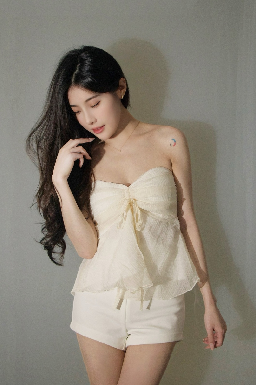 「一抹輕紗,甜得剛剛好」 以細膩的淺黃色紗材質打造, 柔軟輕盈如微風拂過肌膚。 平口抽繩設計優雅修飾鎖骨與肩頸曲線, 後背彈性設計帶來自在貼合感, 內附柔軟胸墊, 免穿內衣也能安心出行。 無論是海邊度假、花園派對,還是日常約會, 它都能為妳增添一抹溫柔的甜美氣息, 讓每一個回眸都帶著光。 Read More #平口上衣 #抽繩設計 #內附胸墊 #甜美穿搭 #度假女裝 #日常約會穿搭 #韓系女裝推薦 #LUNÉA穿搭