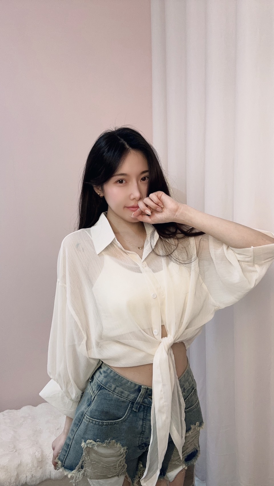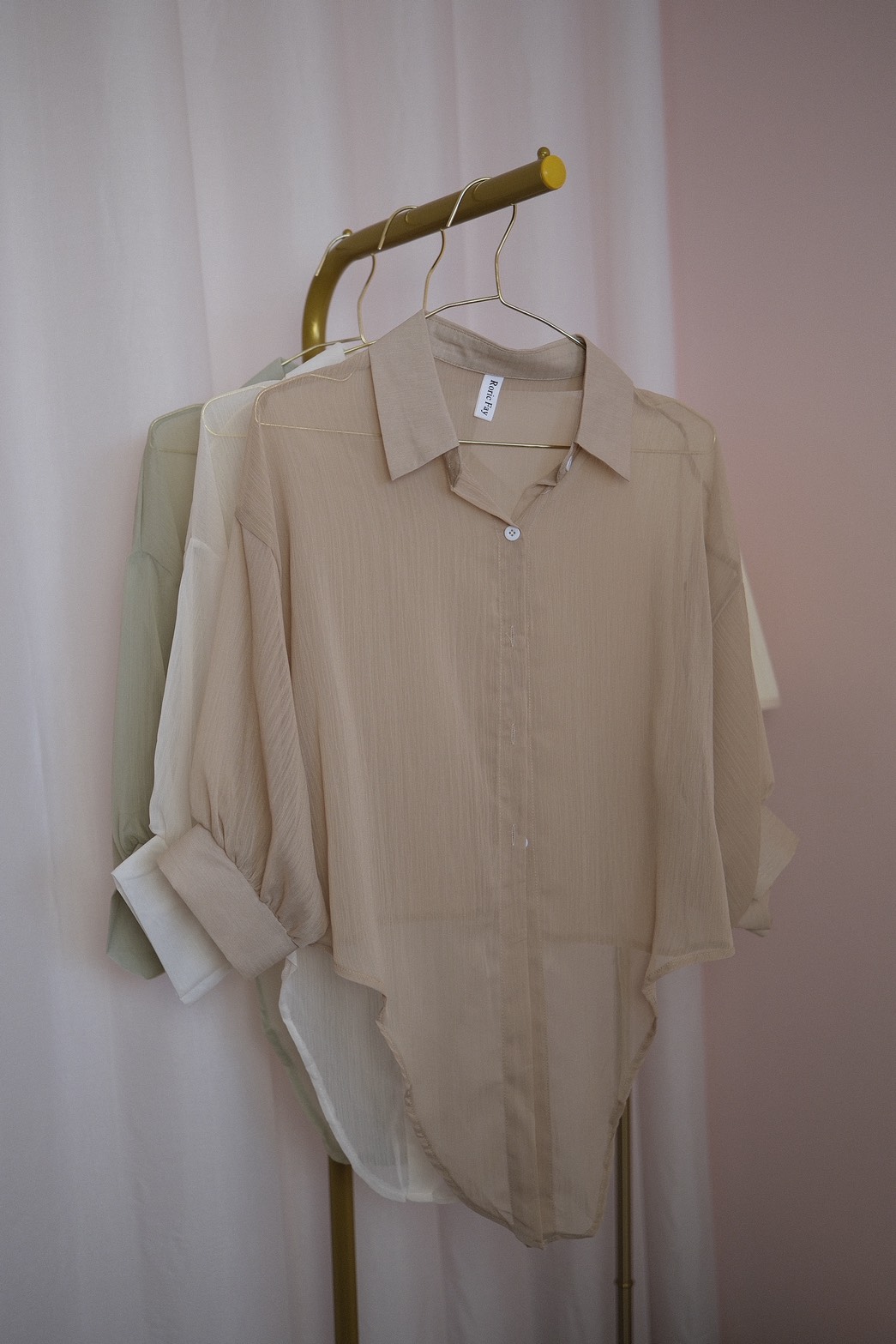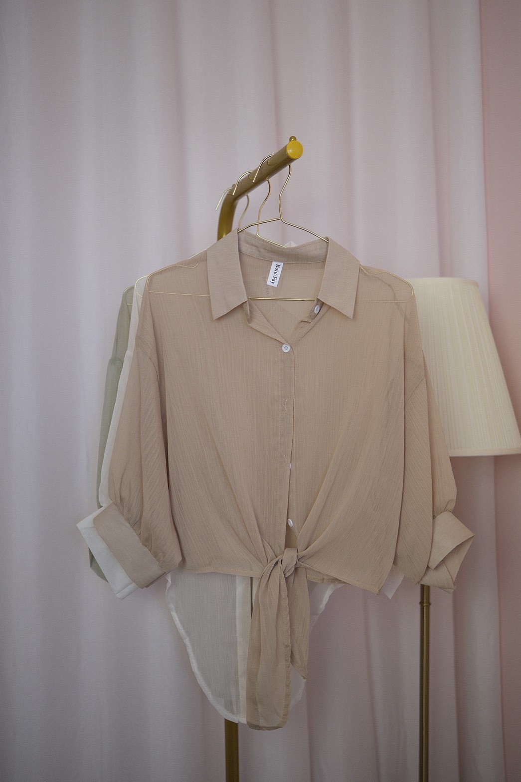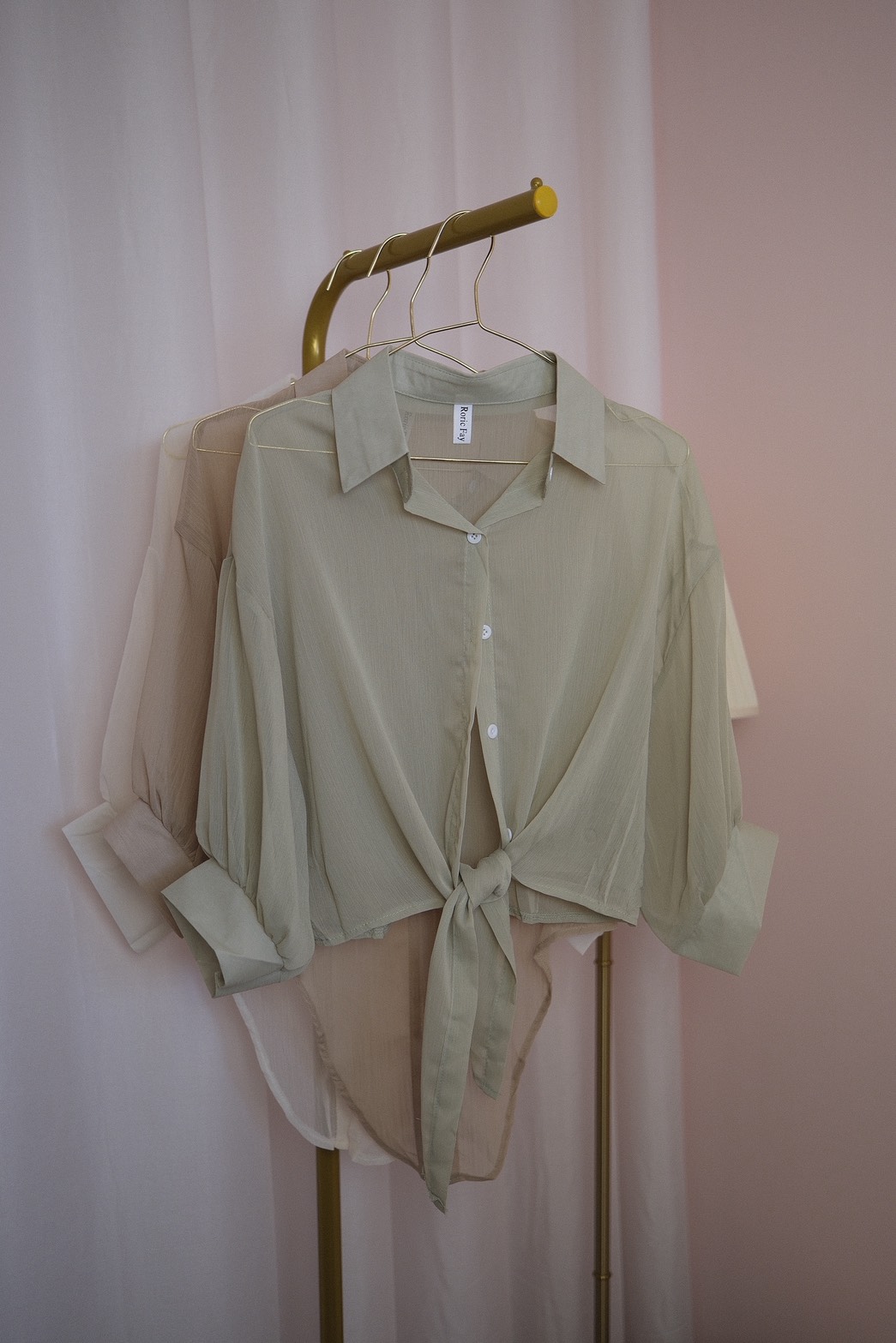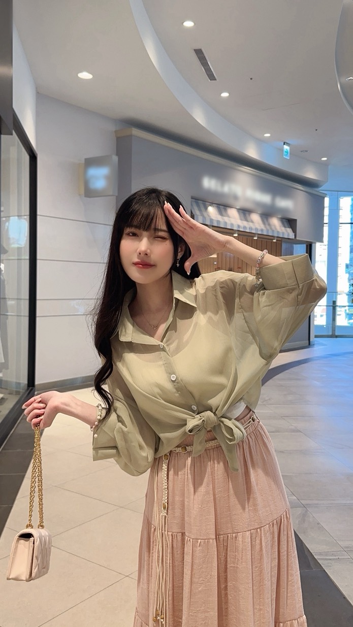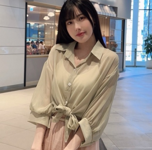 這款漫光綁帶壓紋雪紡罩衫,