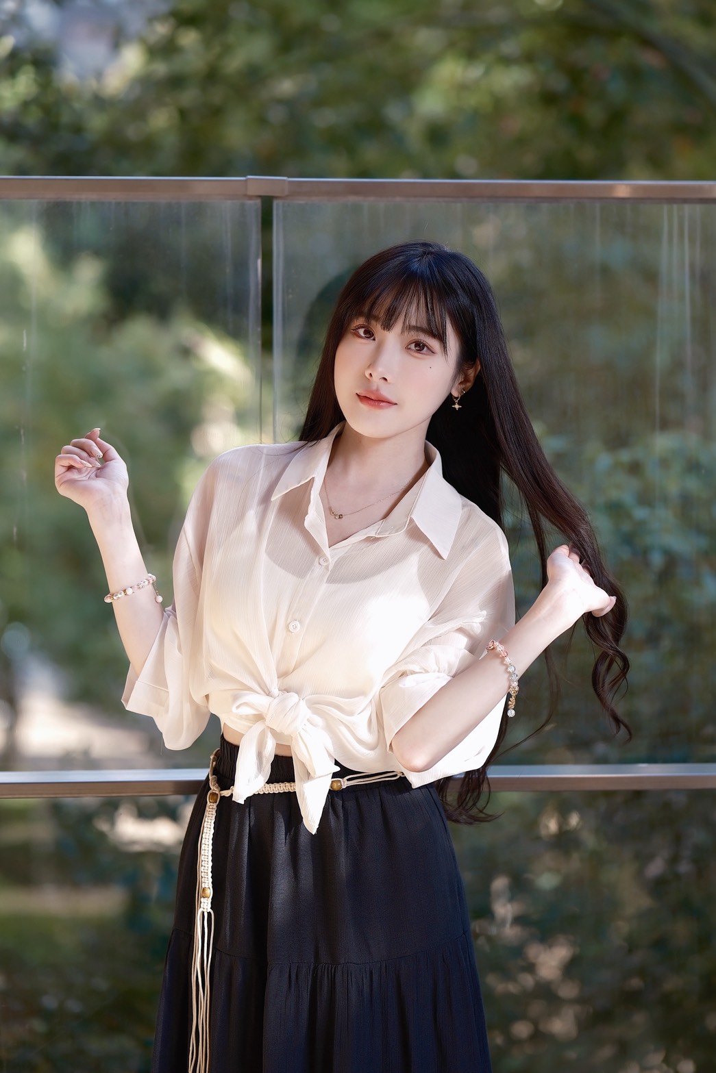 「輕盈壓紋雪紡,穿出行走的微風感」