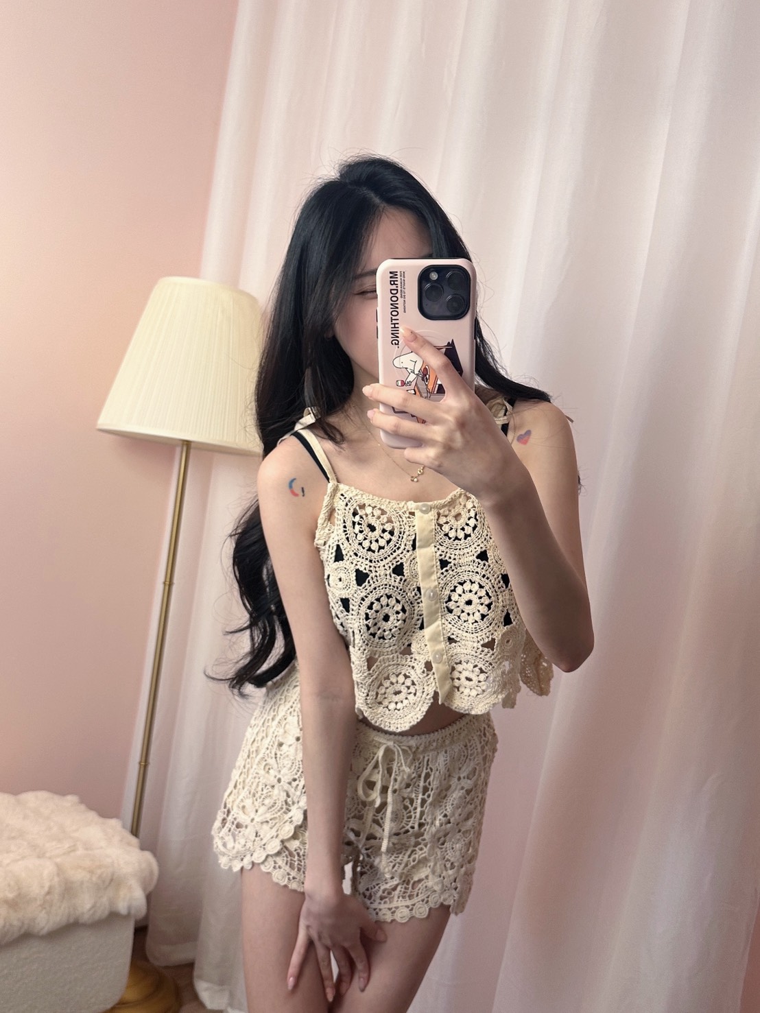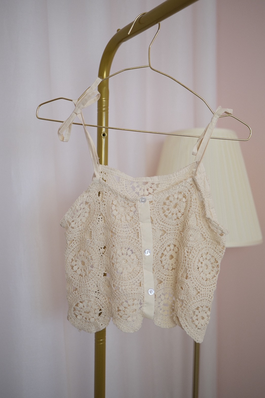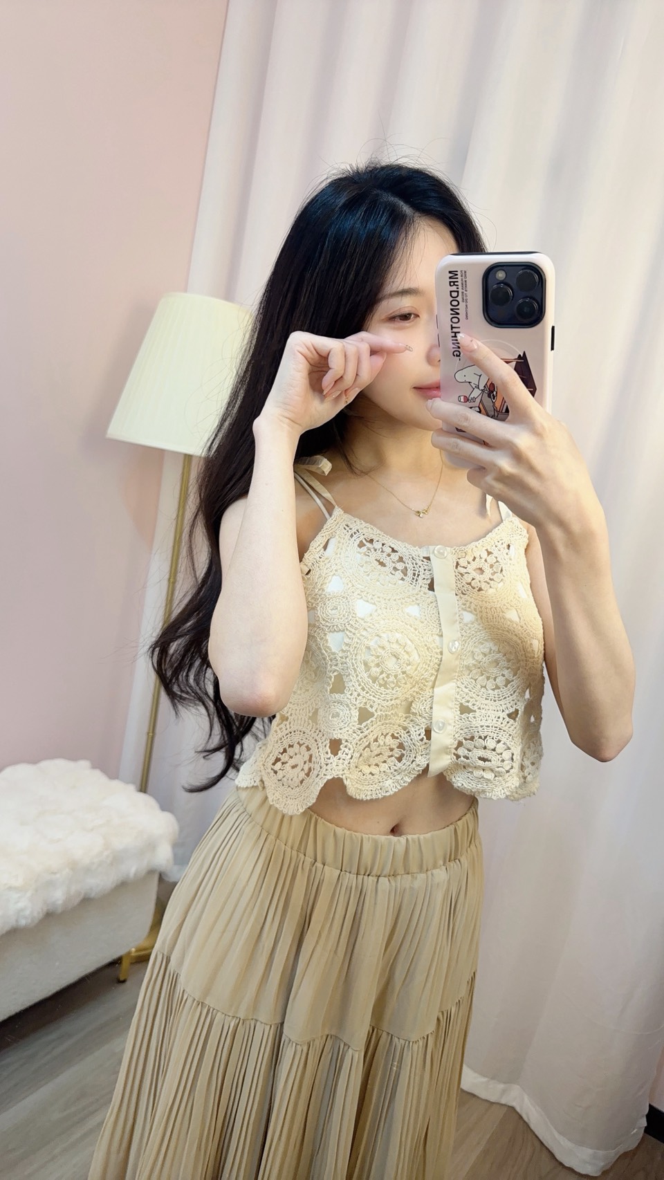 「小小背心,大大氣質」 這款花語雕花細肩背心, 以立體雕花鉤織工藝呈現細膩的花朵紋理, 層次感豐富且充滿手工溫度。 細肩綁帶設計可自由調整長度, 貼合不同身形與穿搭需求。 短版剪裁修飾比例,露出迷人腰線, 無論搭配高腰裙、短褲還是長褲, 都能穿出清爽俐落的夏日感。 親膚透氣的面料讓你在炎熱天氣中依然舒適自在, 單穿或作為外搭都極具風格。 #雕花背心 #細肩設計 #短版上衣 #夏日女裝 #親膚透氣 #清爽穿搭 #韓系女裝推薦 #LUNÉA穿搭