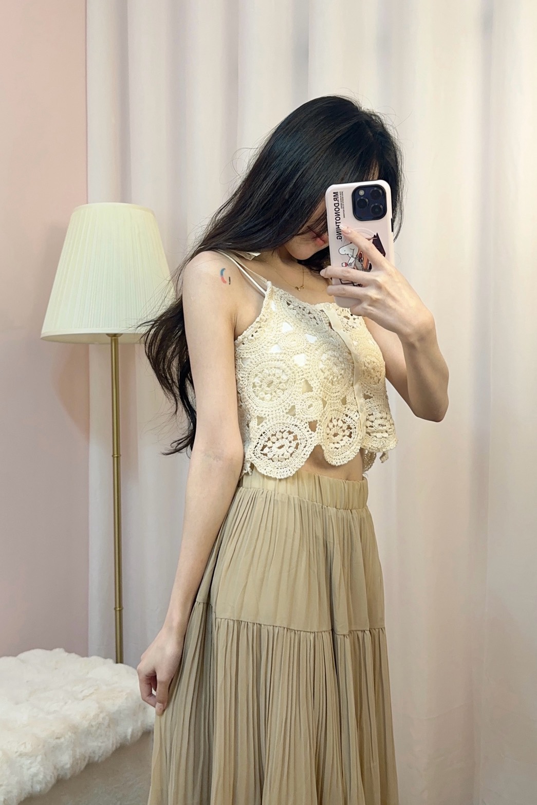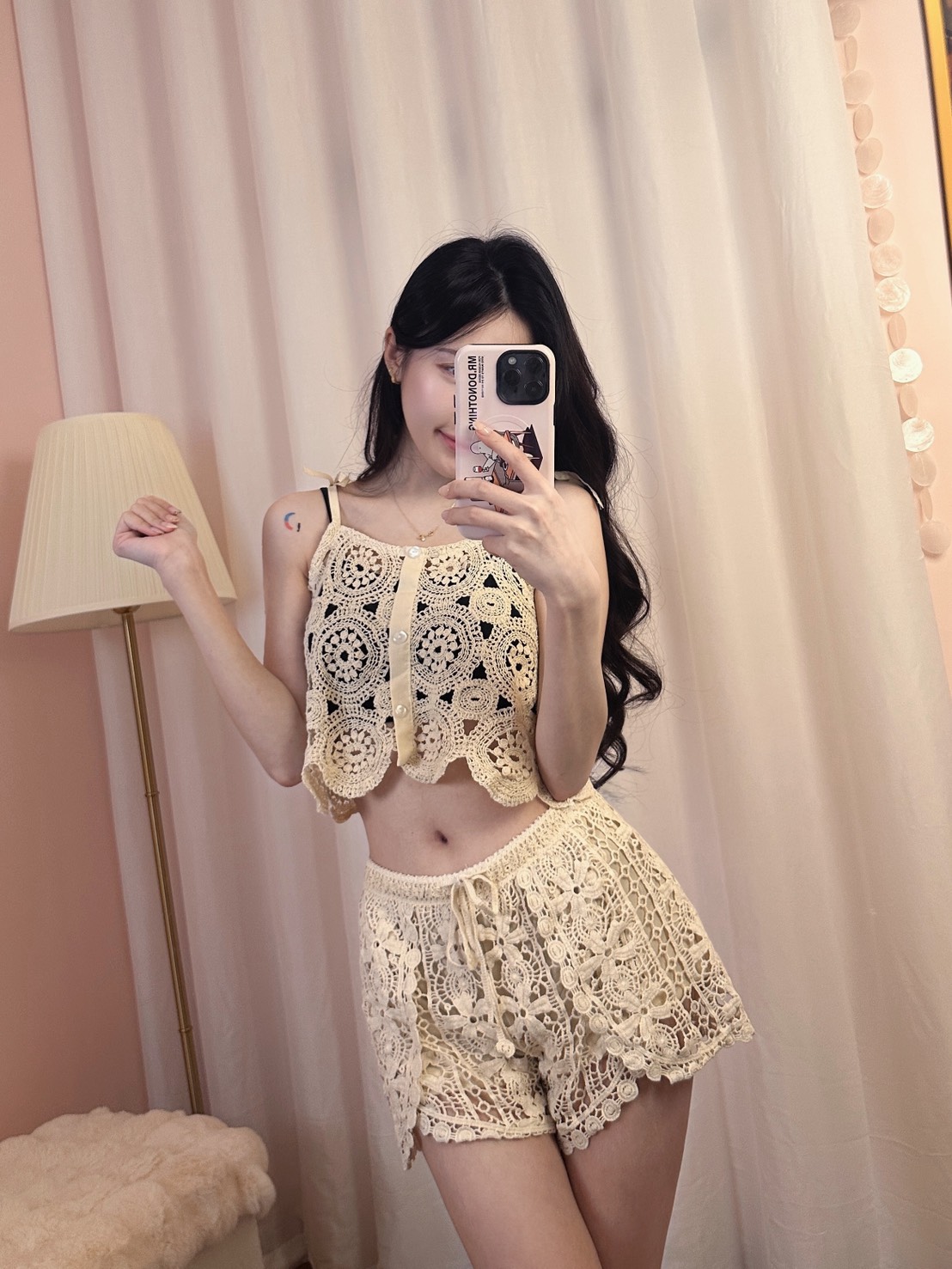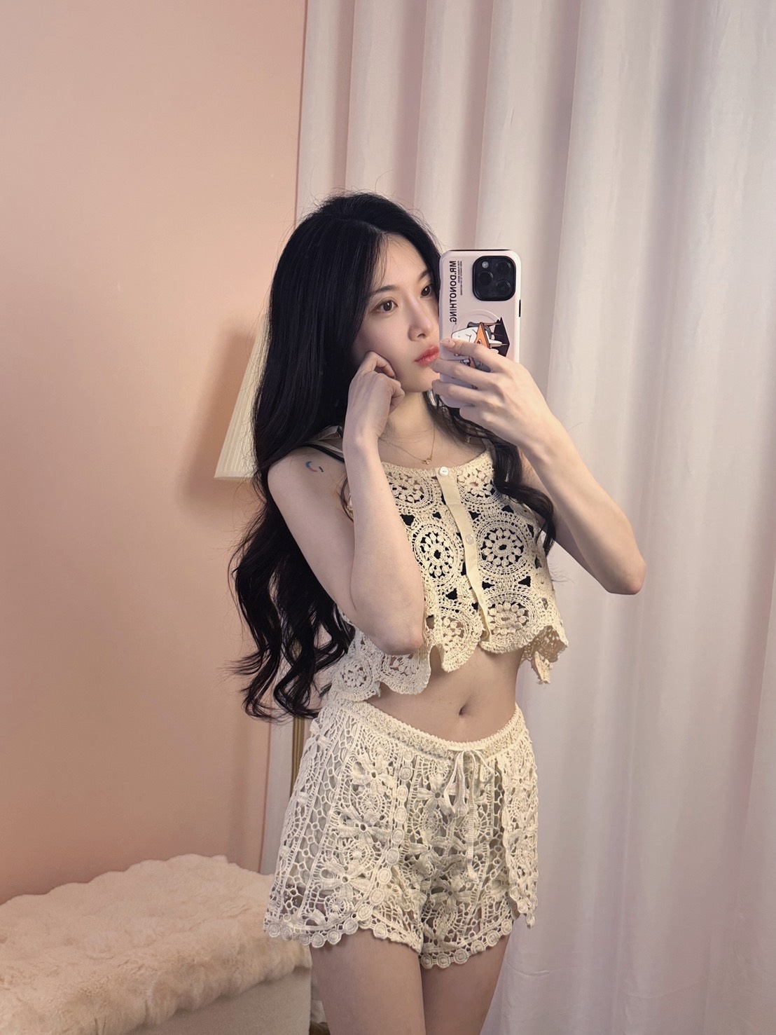 「小小背心,大大氣質」 這款花語雕花細肩背心, 以立體雕花鉤織工藝呈現細膩的花朵紋理, 層次感豐富且充滿手工溫度。 細肩綁帶設計可自由調整長度, 貼合不同身形與穿搭需求。 短版剪裁修飾比例,露出迷人腰線, 無論搭配高腰裙、短褲還是長褲, 都能穿出清爽俐落的夏日感。 親膚透氣的面料讓你在炎熱天氣中依然舒適自在, 單穿或作為外搭都極具風格。 #雕花背心 #細肩設計 #短版上衣 #夏日女裝 #親膚透氣 #清爽穿搭 #韓系女裝推薦 #LUNÉA穿搭