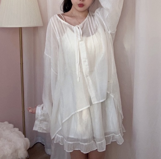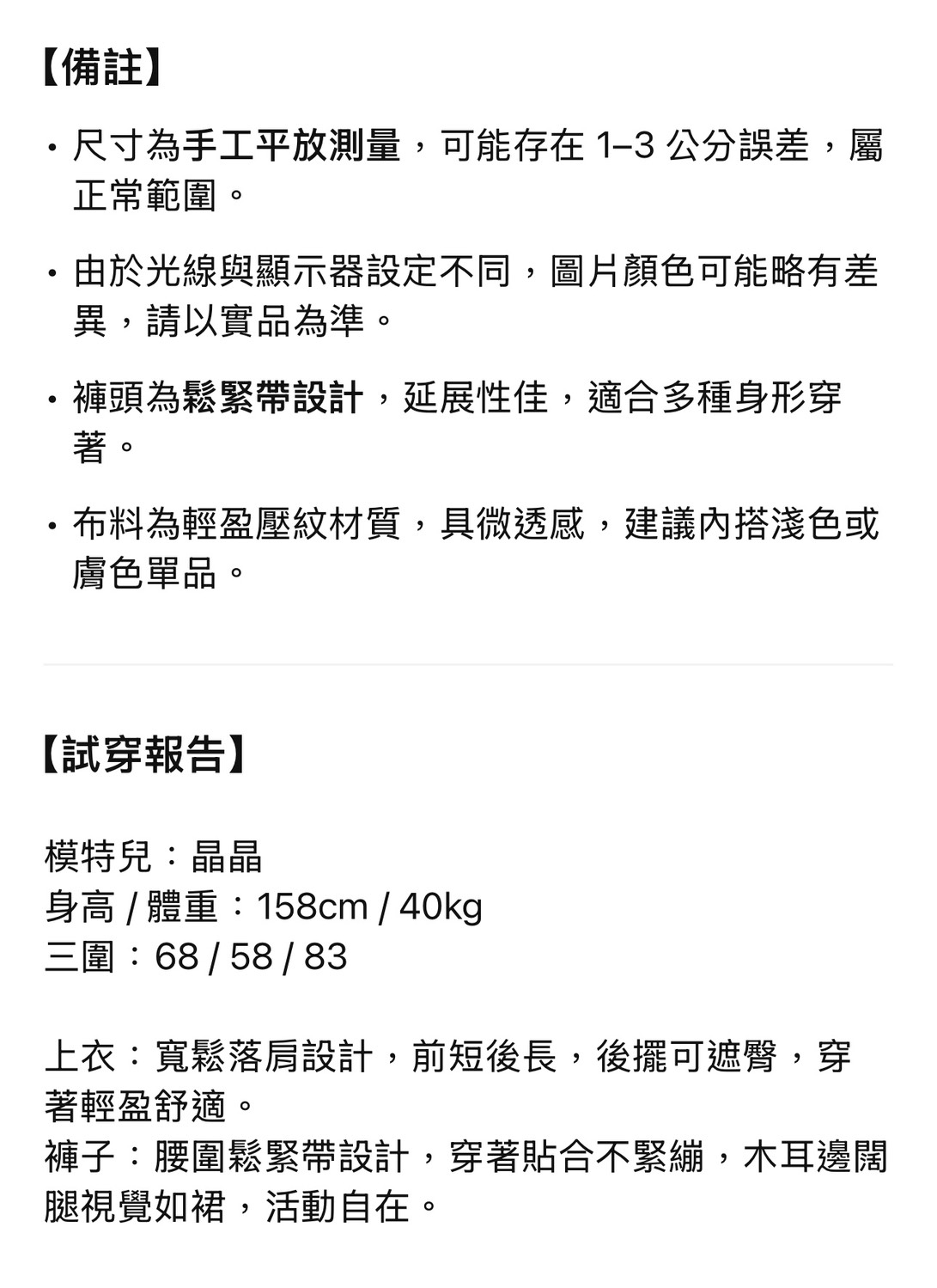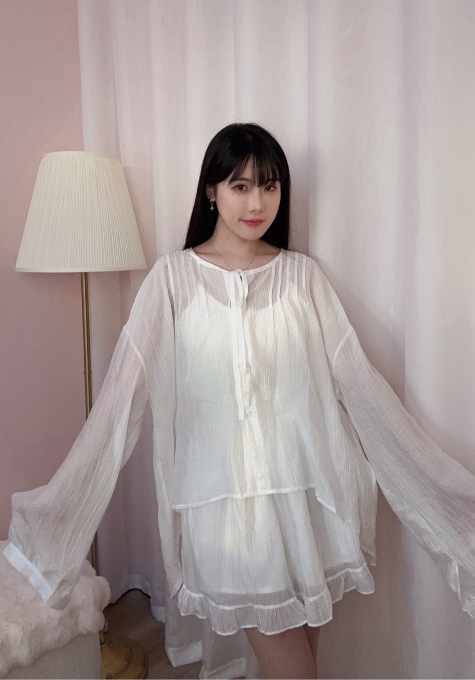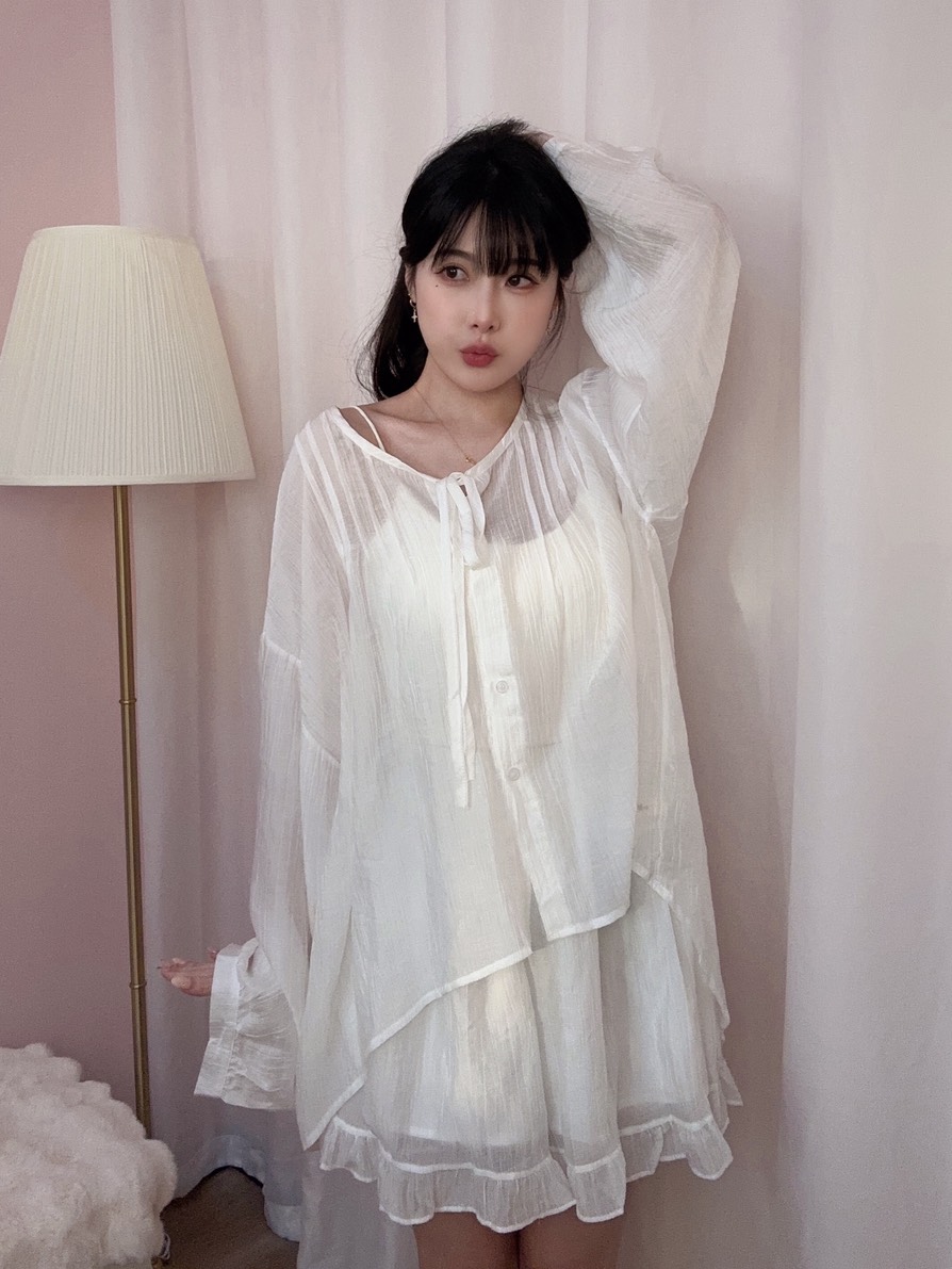 貼心提醒:布料偏輕薄,建議內搭淺色或膚色單品;本商品為成套兩件,不含內搭。