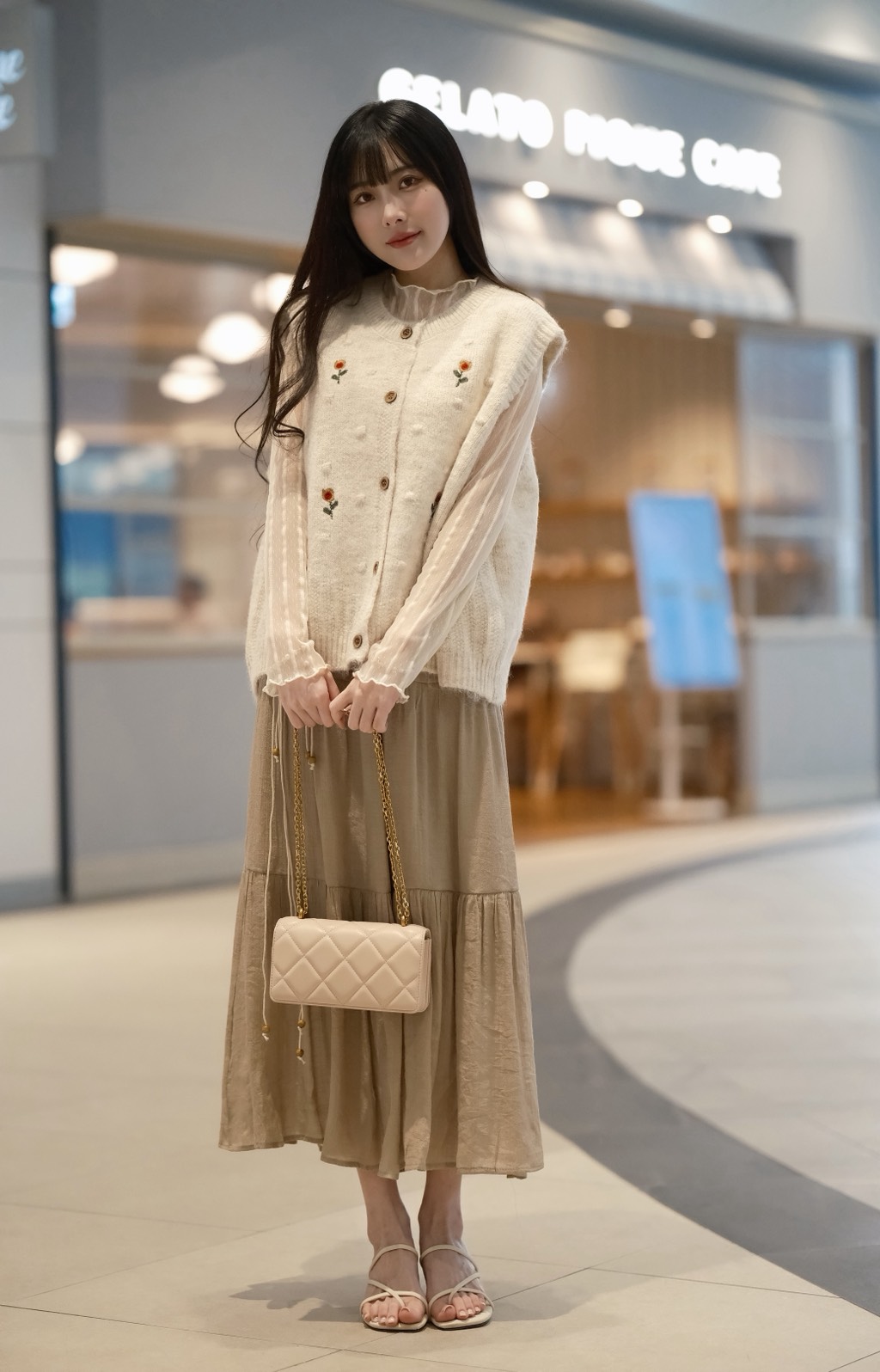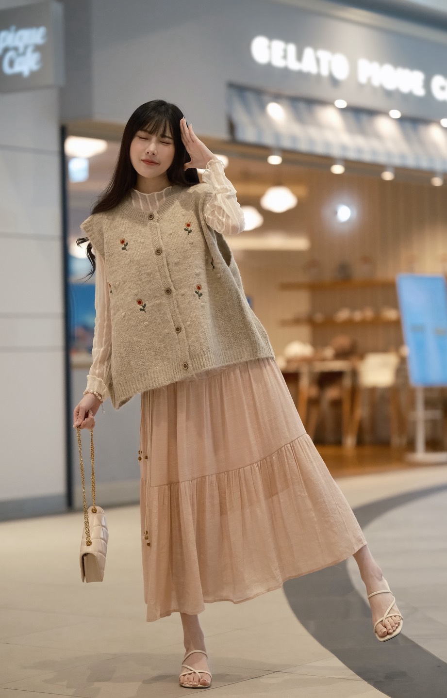 • 內搭薄雪紡/高領打底 → 日系學院風